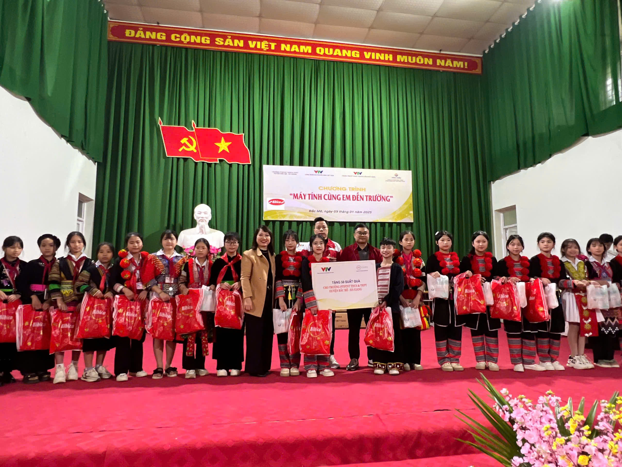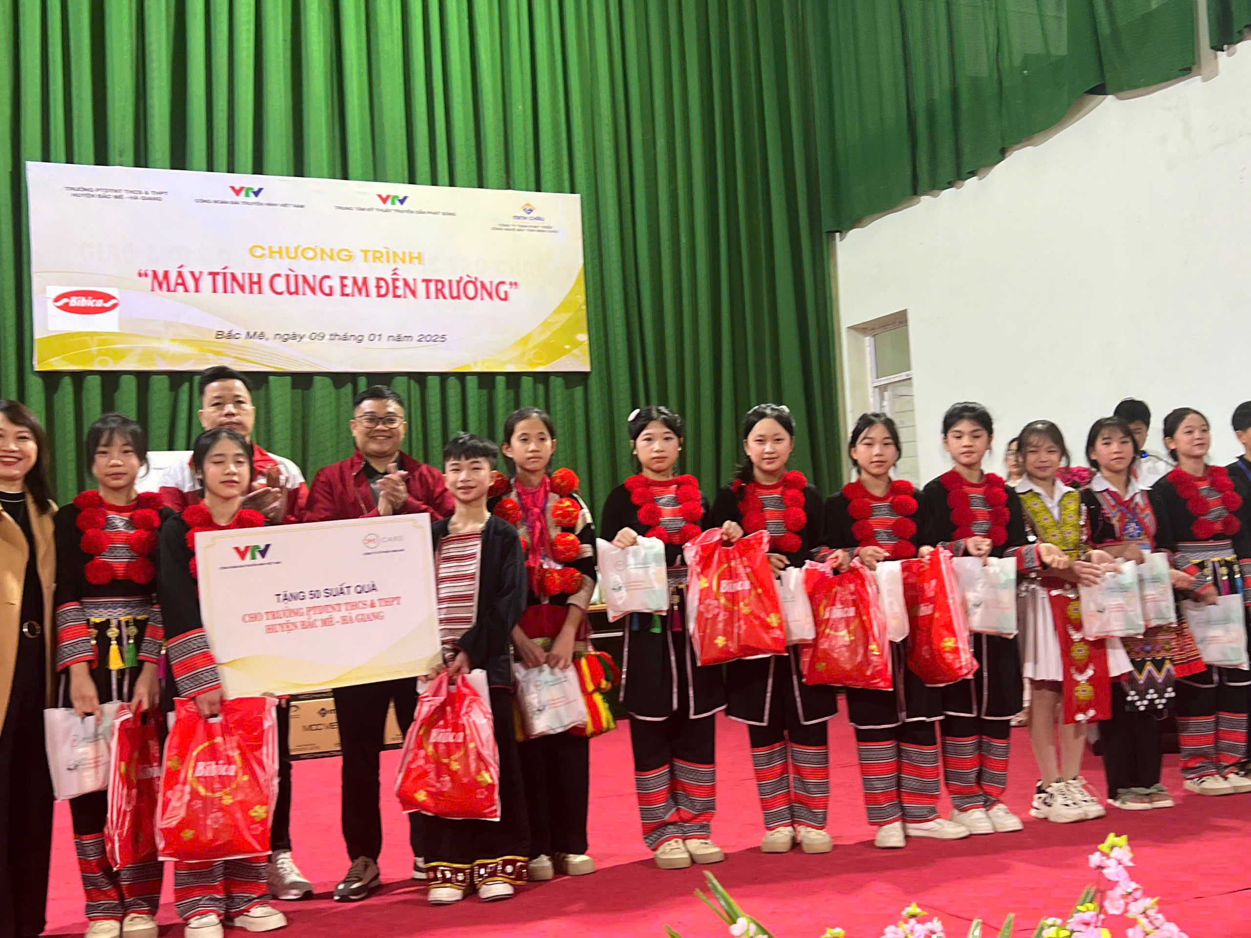 Với tinh thần tương thân, tương ái, nhằm chia sẻ và giúp đỡ các trường học thiếu thốn về trang thiết bị học tập, cũng như hỗ trợ các học sinh nghèo, học sinh cận nghèo, có hoàn cảnh khó khăn, đồng chí Đinh Đắc Vĩnh, Phó TGĐ Đài THVN, Chủ tịch Công đoàn cùng đại diện Ban Chấp hành Công đoàn Đài THVN, Công đoàn Trung tâm Kỹ thuật Truyền dẫn phát sóng và Công ty TNHH Phát triển Công nghệ máy tính Minh Châu đã đến thăm, tặng quà cho Trường PTDT nội trú THCS &THPT Bắc Mê. Chia sẻ với những khó khăn, thiếu thốn mà nhà trường và các học sinh đang phải đối mặt, đoàn công tác đã gửi tặng: 10 máy tính MCC của Công ty TNHH Phát triển Công nghệ Máy tính Minh Châu; Công đoàn Trung tâm Kỹ thuật Truyền dẫn phát sóng tặng máy giặt, máy sấy và 28 suất học bổng trị giá 117 triệu; 50 suất quà là sữa tắm, nước rửa chén và nước tẩy rửa bồn cầu của Nhật; 100 bộ quần áo ấm và bánh kẹo cho học sinh toàn trường.